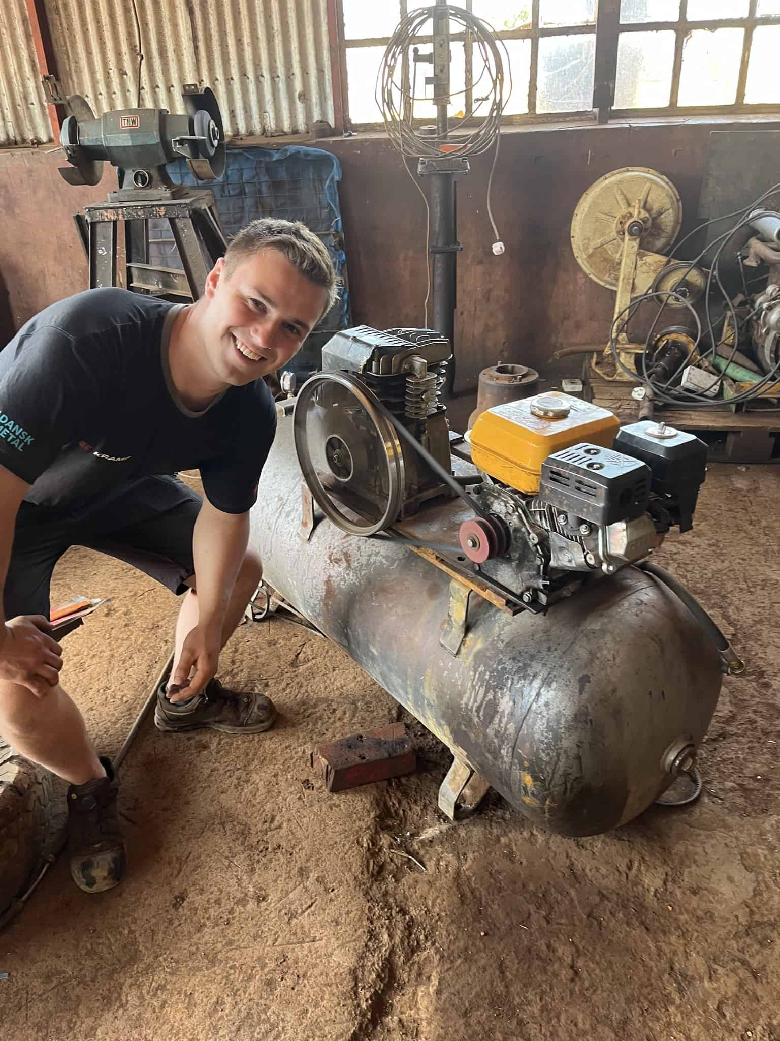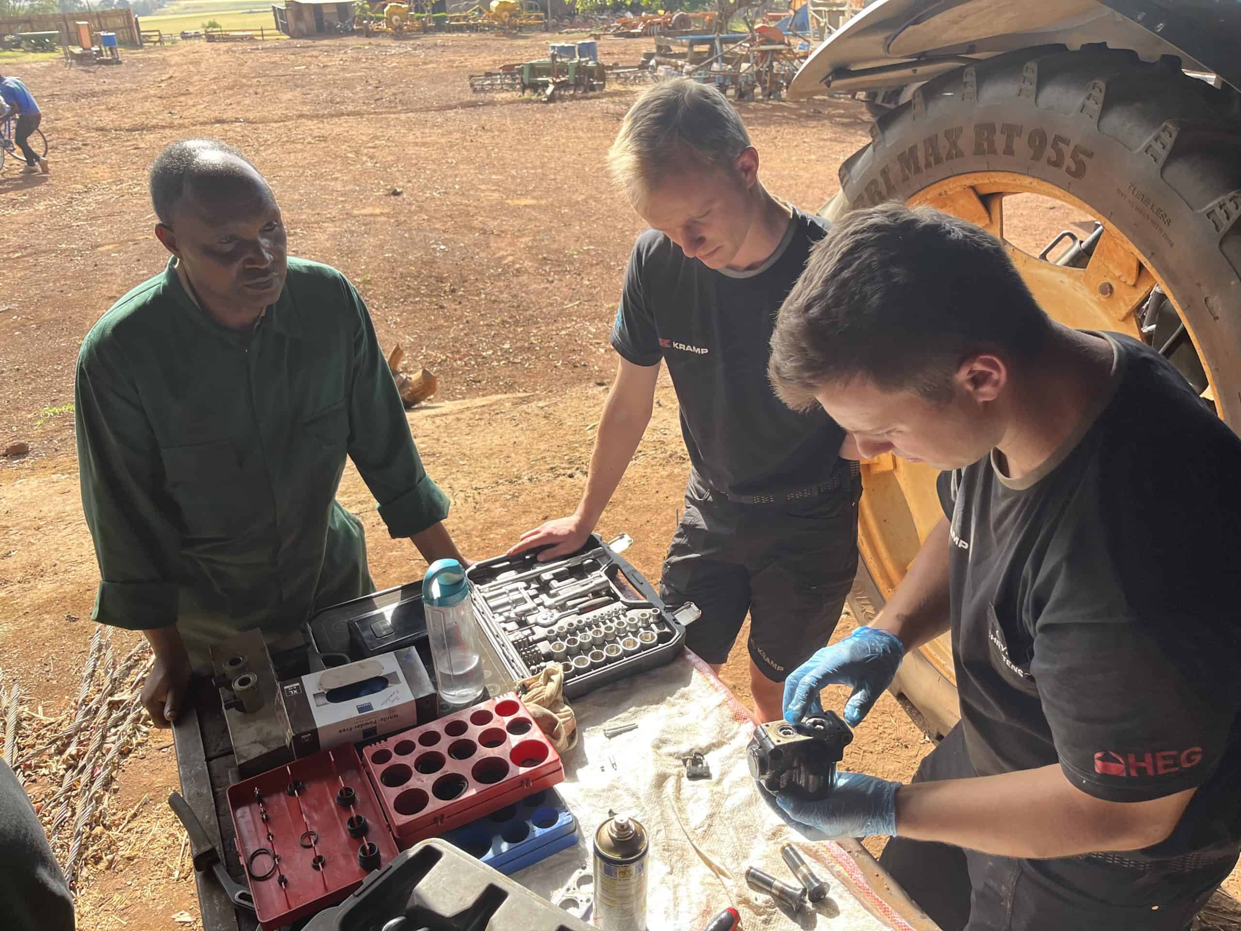 “Jeg synes, det har været en god ting ved praktikken, at vi arbejdede på de lokales præmisser og ikke med den teknologi, vi har tilgængelig derhjemme. På den måde kan de også bruge de ting, vi har lært dem, når vi er rejst hjem.” Karl Ibsen, elev, landbrugsmaskinmekanikeruddannelsen på HEG